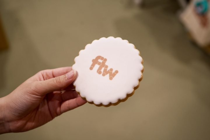 イベント期間中、FUJI TEXTILE WEEKのロゴがプリントされたラテとクッキーを販売します。